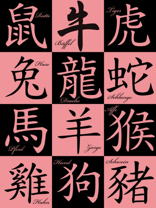 12 간지에는 12 동물이 나옵니다. 자(쥐), 축(소), 인(호랑이), 묘(토끼), 진(용), 사(뱀), 오(말), 미(양), 신(원숭이), 유(닭), 술(개), 해(돼지)입니다.